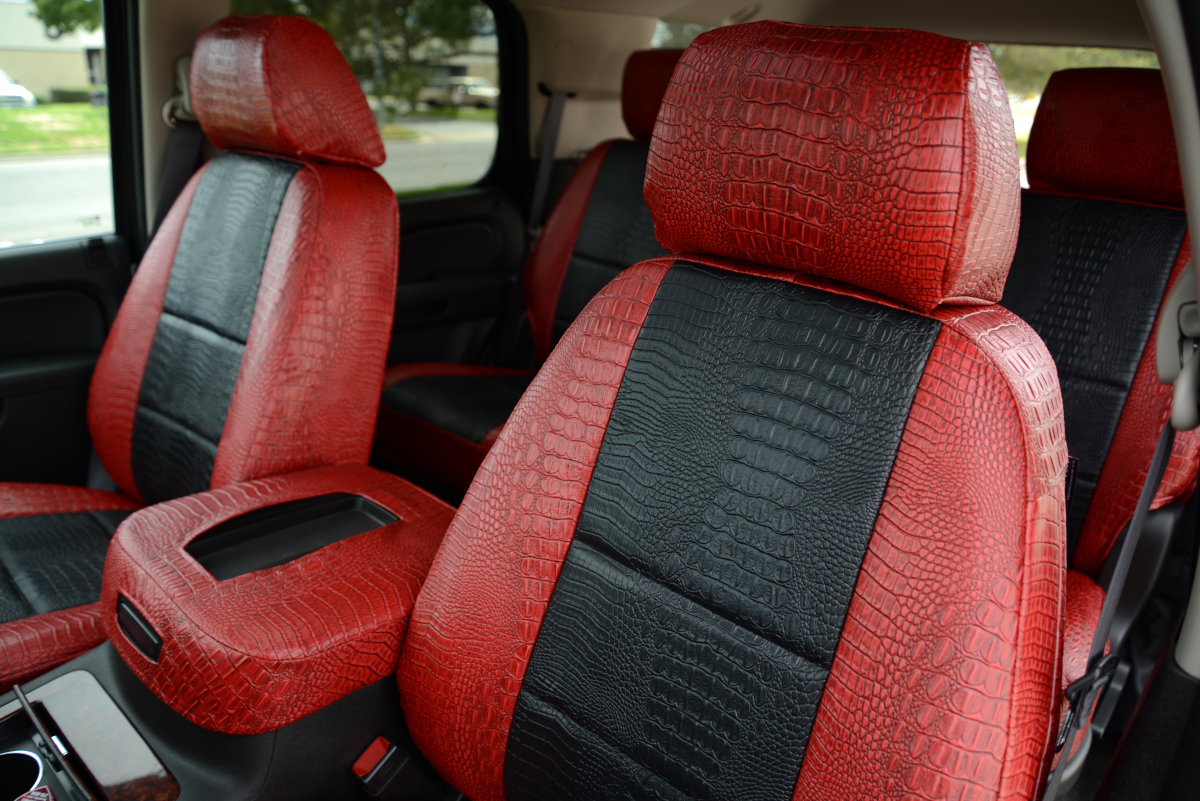 Our premier luxury seat cover material, Croc and Ostrich textures simulate exotic animal leather for an upscale look.