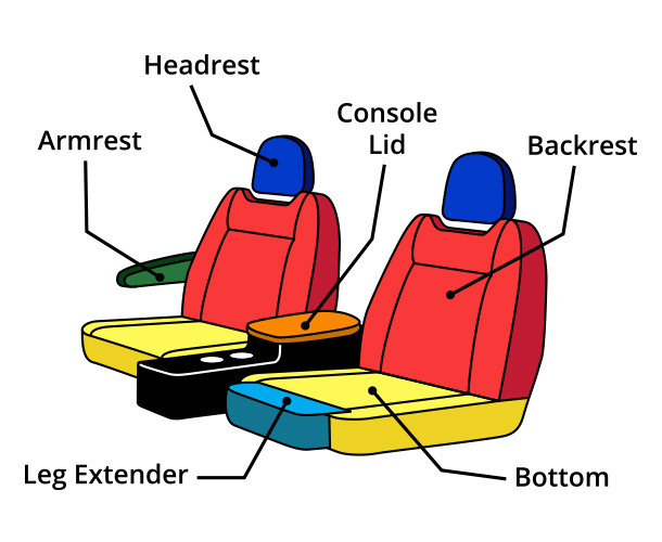 - Your custom seat covers are designed in several pieces to create the best fit.